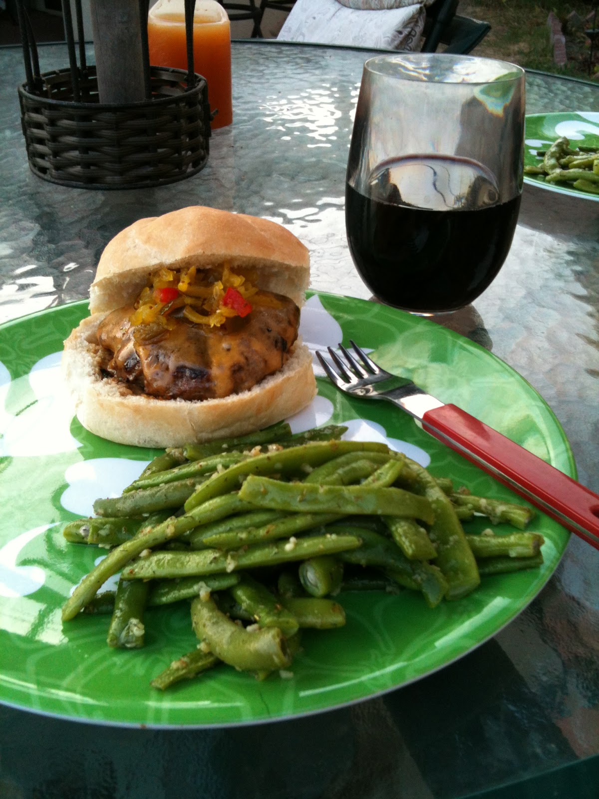 My mother-in-law lived with us for about a year, after her husband died and she moved to California. As her birthday approached, we explained it was our family custom that she select the menu for her celebration dinner — anything at all was acceptable, as long as it was something that we could buy or make. Imagine our disappointment when she asked for a simple hamburger and green beans! The children were particularly horrified, as they had been dreaming of homemade pizza or a 25# lasagna, and even with the added request of dill and thyme on the green beans, nothing could ease their pain.